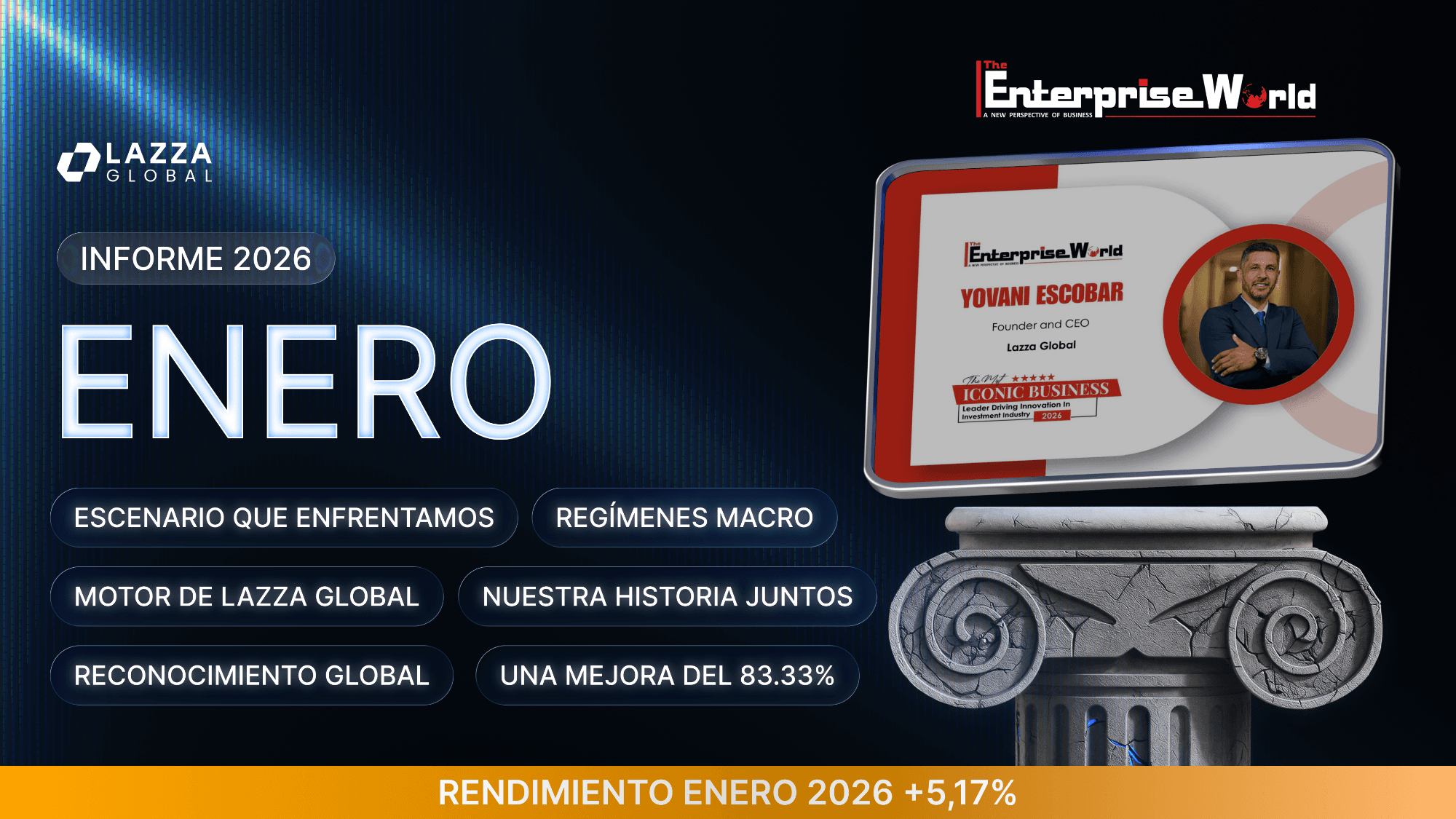 En 2025-2026, fuimos reconocidos como “AI-Driven Investment Company of the Year in Latin America” por Financial Services Review, un premio que avala nuestro enfoque visionario y la implementación de tecnologías avanzadas para detectar oportunidades de mercado de manera precisa y eficiente. Nuestra plataforma, basada en algoritmos de última generación e inteligencia artificial de vanguardia, está diseñada para optimizar tus inversiones. No obstante, es importante recordar que no garantizamos rendimientos; toda inversión implica riesgos inherentes y los resultados pasados no constituyen garantía de desempeño futuro. Te recomendamos evaluar detenidamente tus objetivos financieros y, en caso de duda, consultar con un asesor especializado.